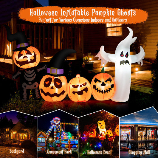 7.5 Feet Long Halloween Inflatable Spooky Ghost and Pumpkin Decor with Lights