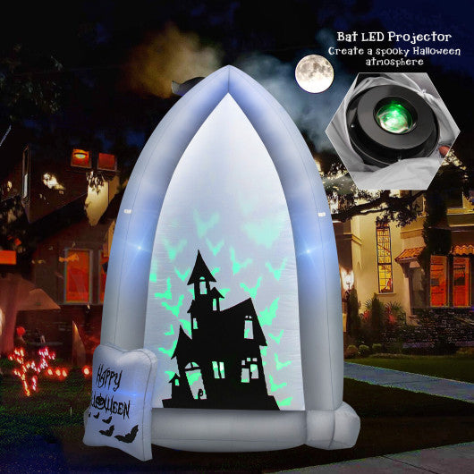 7 Feet Halloween Inflatable Tombstone with Bat LED Projector