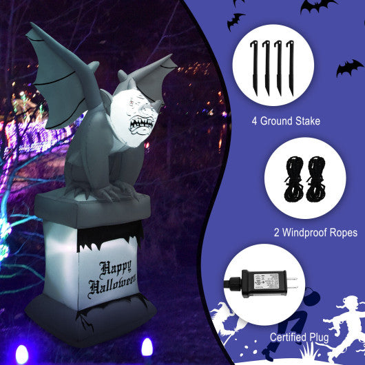 8.2 Feet Halloween Inflatable Gravestone with Gargoyle Yard Decoration and LED Lights