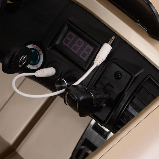 Not Available For Sale Or Use in CaliforniaThis kids ride on car is fantastic and functional for your lovely children. Its beautiful working lights horn button and wing mirrors make it look like a real car. The comfortable seat and MP3 Aux provide enjoyable environment for your babies when playing. This is a perfect gift for your kids! The electric car can be driven by kids or operated by parents with remote control. The car is suitable for children who are more than 3 years old and its safety belt can improve the safety of your children driving on flat surfaces. Besides when the car’s battery is full it can bring you continuous fun for about 40minutes. It is a perfect and excellent gift for your children's birthday Christmas New Year and other festivals. Don’t hesitate to buy one now! Brand new and high quality Suitable for children aged 3+ Drives on flat surfaces Battery operated continuous fun for about 40 minutes Manual / remote control Key start as real car MP3 input Comfortable seat with safety belt Foot pedal for acceleration With horn button Movable wing mirrors LED headlights High / low speed Functions: Forward backward turn right turn left stop Assembly required