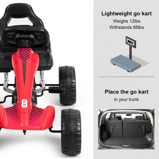 Kids Powered 4 Wheel Adjustable Seat Pedal Go Kart-Red