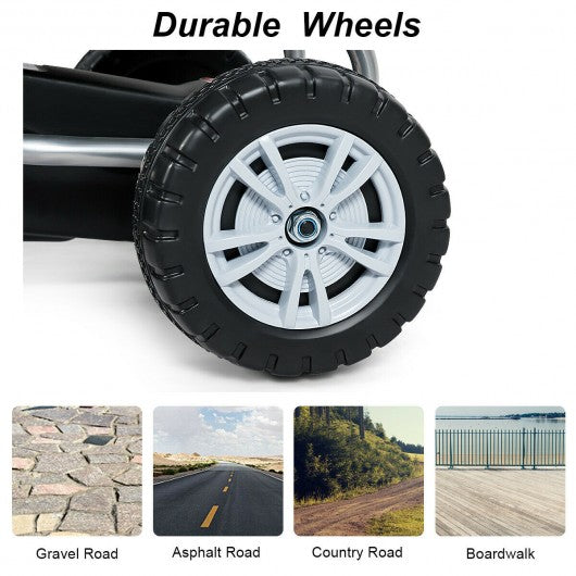 Pedal power go kart features a sturdy iron frame with plastic wheels and an adjustable seat. The lightweight design makes the go kart a true fun-mobile which is effortless for kids to ride. As well as training kids' strength stamina and co-ordination the go-kart is also a fun way for children to learn their first traffic regulations. The adjustable bucket seat will accommodate the length of the child’s leg and children-oriented backrest provides comfortable sitting experience. 4 Anti-slip wheels enhance the stability on the one hand allowing for kids to go many places such as tough ground gravel and grassland on the other hand. It is the go kart that offers kids outdoor and indoor fun. If you are looking for a pedal power go kart don't hesitate to buy it for your kids! Children-oriented design makes kids drive the go kart comfortably 2 position adjustable seat will satisfy users' different needs to accommodate posture High backrest provides easeful sitting experience ASTM certification ensures higher reliability Premium PP and iron materials ensure reliable construction Sturdy enough to withstand a maximum weight capacity of 66lbs Pedal help kids improve co-ordination and avoid trouble of charging Anti-skip wheels is wearable users can go many places whether tough or flat Easy operation makes for the go kart a wonderful gift for boys and girls