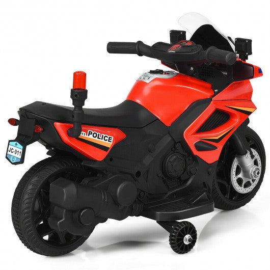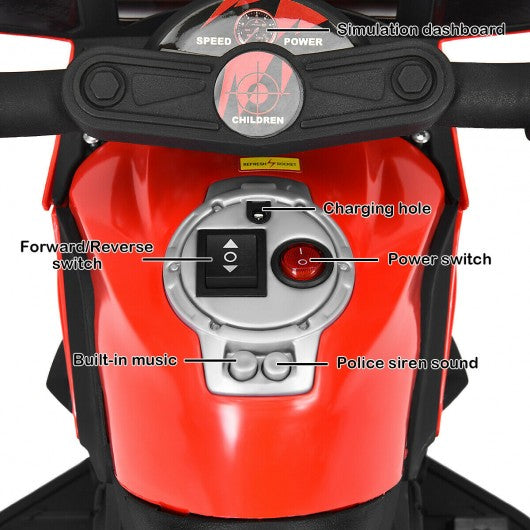 6V Kids 4-Wheel Ride On Police Motorcycle with Training Wheels-Red