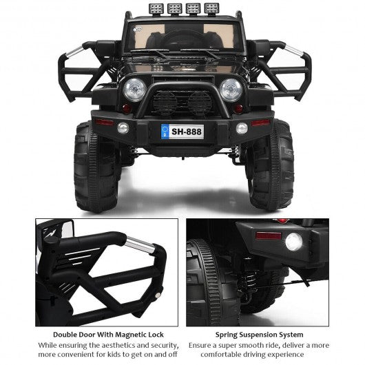12V Kids Remote Control Riding Truck Car with LED Lights-Black