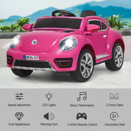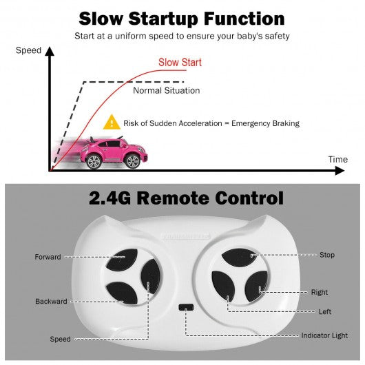 This toy car is a small version of real luxury car which has powerful drive motors to reach 3-5 km/h speed. Children can seat on the car to go for a ride or parents control the car with 2.4 G remote control. Spacious seat openable doors forward/ reverse button horn and steering wheel will give them wonderful and exciting driving experience. With slow startup design shock proof wheels and belt your little one will get the best protection. Kids can press the button to switch and listen various songs and stories doubling their enjoyment. Don't hesitate to buy it! Powerful drive motors to reach 3-5 km/h speed PP new material and metal frame to ensure sturdiness and durability Equipped with AUX input USB port and TF card slot to connect external devices 2.4 G parental remote control mode (3 adjustable speeds) & battery operate mode (high/low speeds) Slow start function for gradual acceleration and reliable braking Spacious seat with safety belt for sitting and playing Cute appearance bright LED lights and horn sound to attract baby 4 explosion-proof wheels with spring suspension for long-time use Forward & reverse button and steering wheel for kids to operate easily Doors can be opened for add fun and convenience One-button start design for enough convenience Has passed CEC CPSIA and ASTM certification for safe use Comes with rechargeable battery and charger adapter Max weight capacity can reach 55 lbs Ideal for children aged 37-95 months old
