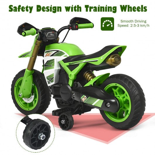 6V Electric Kids Ride-On Battery Motorcycle with Training Wheels -Green