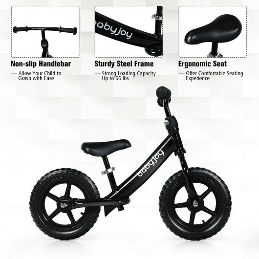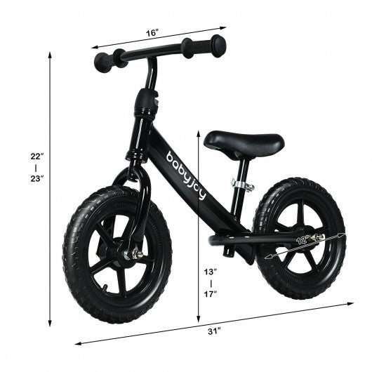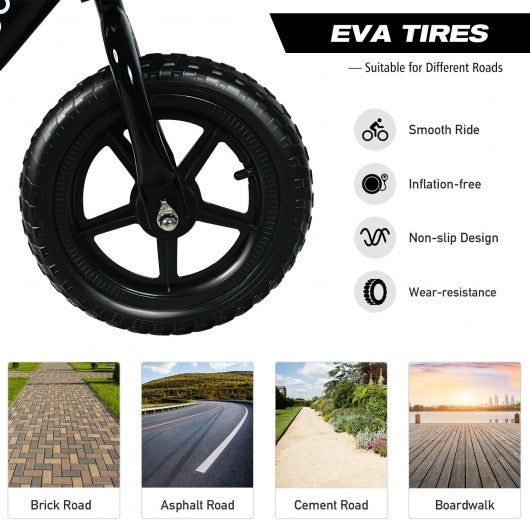 12" Kids Balance No-Pedal Ride Pre Learn Bike with Adjustable Seat-Black