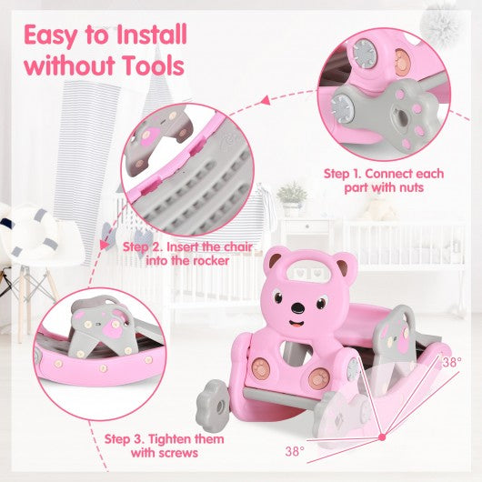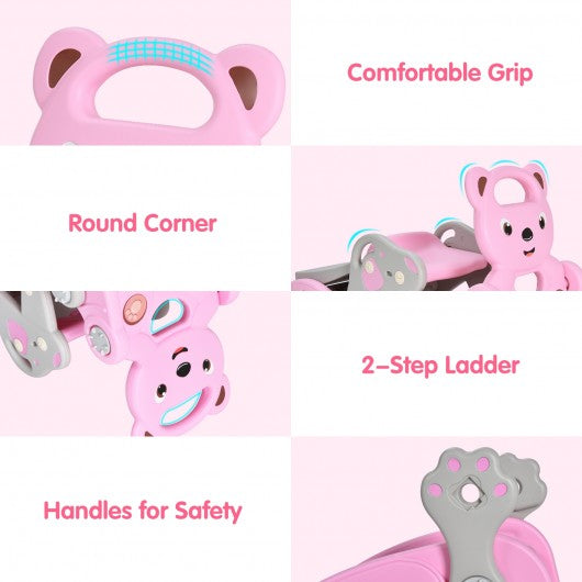4-in-1 Toddler Slide and Rocking Horse Playset with Basketball Hoop-Pink
