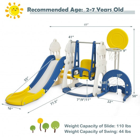 6 in 1 Slide and Swing Set with Ball Games for Toddlers-Blue