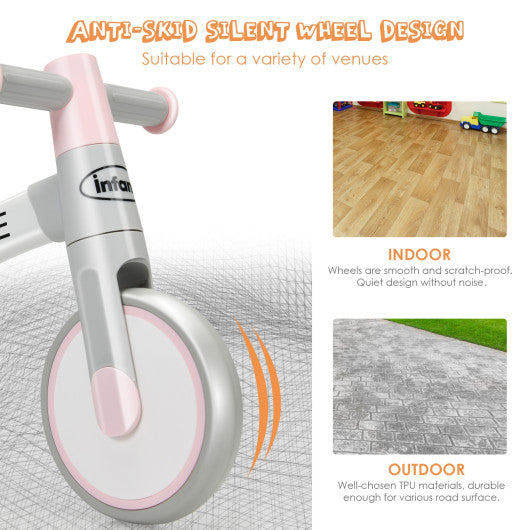 Indoor Outdoor Kids Riding Balance Bike with Silent Wheels-Pink