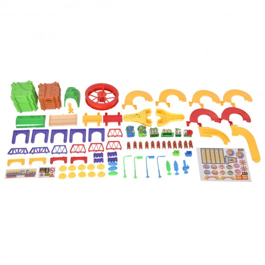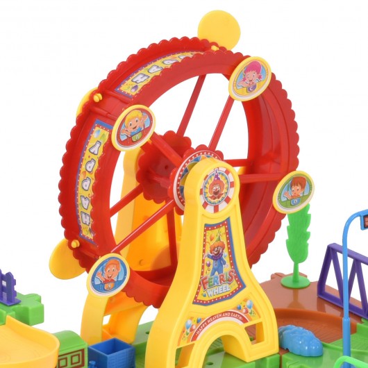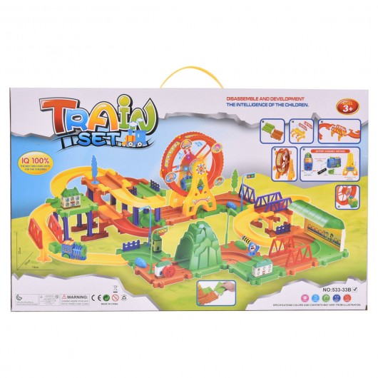 Specification: Type: Blocks Color: Multi-color Suitable for children: 3-8 years old Carton size: 23" x 14" x 3" (L x W x H) Material: ABS plastic Pieces: 79 pcs Package includes: 79 x plastic building blocks (with a Ferris wheel use 2 AAA battery not included) 2 x trains (use 1 AAA battery not included)