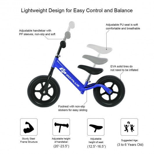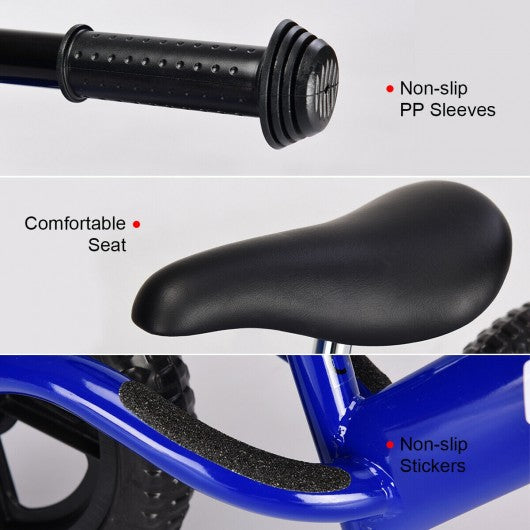 Black/Pink/Blue 12" Balance Kids No-Pedal Learning Bicycle -Blue