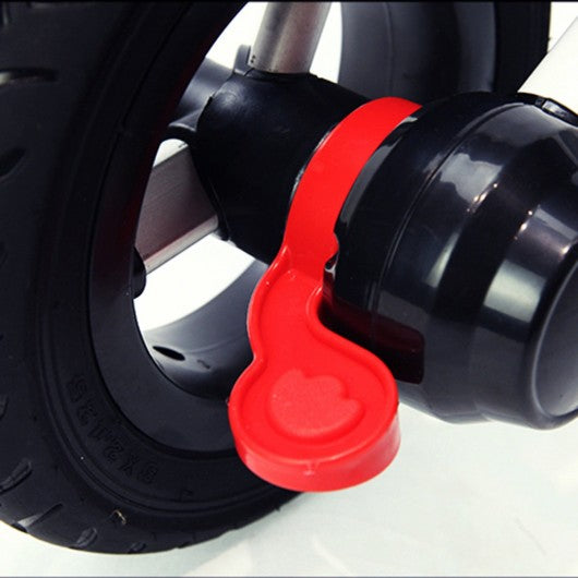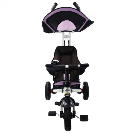 This baby tricycle is perfect for your growing children as it could be folded up for easy storage and transportation. The tricycle can be assembled in 4 ways and can be converted from a stroller to a steering tricycle learning-to-ride- tricycle and finally a classic tricycle. This baby tricycle has a parent handle which is made for steering while adjustable removable pedals are designed to prevent baby's feet from being hit by front wheel. It features many secure designs such as a safety belt to keep your little one safe. And a padded handrail which is crash-proof is also removable for baby to get on and off easily. The large-capacity back hanging bag could be detached for individual using. Brand new and high quality Can be assembles in 4 ways according to your kid's age Removable canopy for UV protection High-back seat for comfort and safety Foamed surrounded guardrail make it is crashworthy 2 brakes on back wheels for easy control and timely stop Free aeration titanium air wheel is anti-wear and could decrease vibration Back Foldable Footrest Pedals become footrests for early stages Large-capacity back hanging bag could be detached for individual using