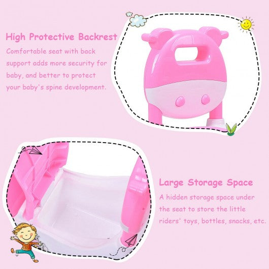 3-in-1 Toddlers Sliding Pushing Cart Riding Car w/ Sound-Pink