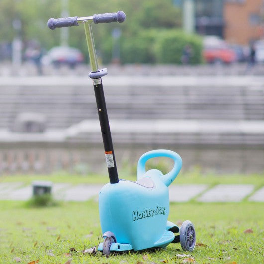 3 in 1 Storage Kids Kick Wheel Scooter w/ Adjust Handle Bar-Blue