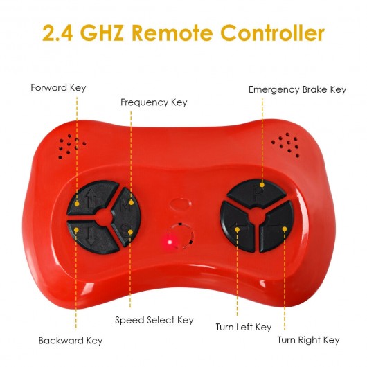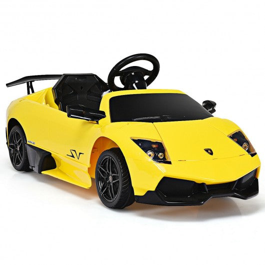 Impeccably stylish and sleek lines of this 12V toddler ride create a feeling of excitement with an absolutely sporty edge. It comes with Lamborghini Murcielago insignia; thus it is officially licensed by Lamborghini. This Lamborghini kid electric car can be operated in two ways either by kid via steering wheel and foot "gas pedal" or by parents using the included 2.4GHz remote. Forward/backward moving left/right turn and stop functions can all be done manually or with the remote controller if the child is not able to drive it. Realistic functional features such as front and rear LED lights and horn sound buttons are perfect for 3-7 years old kids to have fun. Don't hesitate to buy one! Your kids will absolutely love it! Officially licensed Lamborghini kids electric ride-on car Can be controlled by kids via steering wheel and pedal or by parents with the remote controller Comfortable seat with a safety belt to make kids much safer while enjoying driving High-quality plastic tires non-slippery and wear resistant Comes with a 12v rechargeable battery for convenient charging Provide kids ultra-realistic driving enjoyment perfect for 3-7 years old kids to have fun Features with front and rear LED lights adjustable speeds horn sound seat belt forward and backward moving functions Constructed with premium environment-friendly PP and PE materials