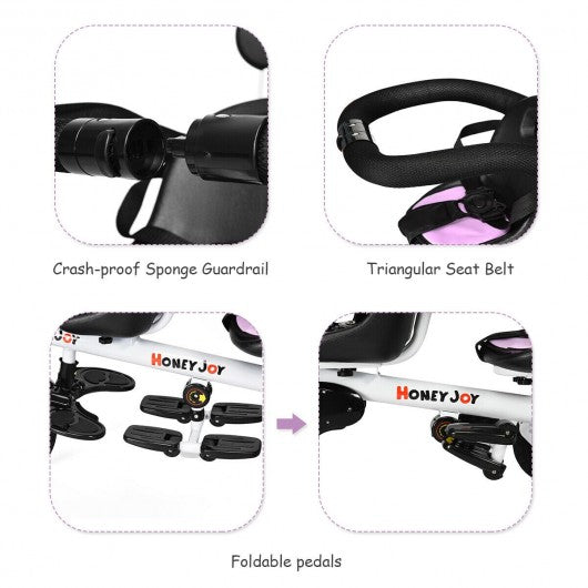 Twins Kids Baby Tricycle With Safety Double Rotatable Seat-Pink