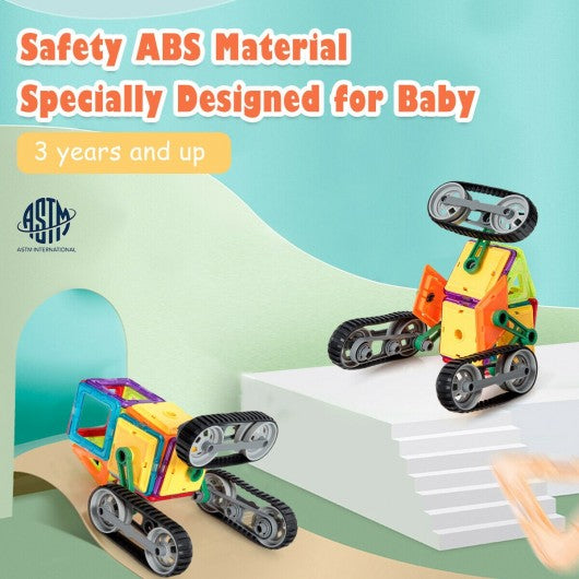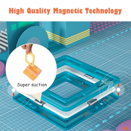 Are you looking for an educational toy for your kids the safe and entertaining magnetic blocks set is the best choice for you. This magnetic tiles set contains 51 PCS of different geometrical shapes and patterns with bright colors that children will definitely love. Made from non-toxic and durable ABS plastic the magnetic building blocks are designed to withstand rough play. The edges of magnet blocks are also smoothly ground for their safety. In addition this magnet blocks are not just an intimate game partner of children but also an important teaching tool to educate children. They can develop shape and color recognition building and motor skills while building vehicles. Also packaged in colorful box this magnetic tiles set is the best gift for children. Buy and give your youngsters a head start! 51 pcs magnetic building blocks for free combination and endless fun High grade ABS material is non-toxic ensuring the safety Magnetic blocks with round edge is designed to protect kids Different shapes of magnetic blocks could create multiple structures Educational magnetic blocks are suitable for cultivation of creativity Lightweight and mini size design is helpful for travel and storage Strong magnet is convenience for construction building Colorful box could be used to store magnetic blocks