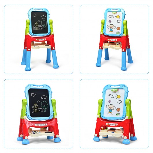 Height Adjustable Kids Art Easel Magnetic Double Sided Board-Blue