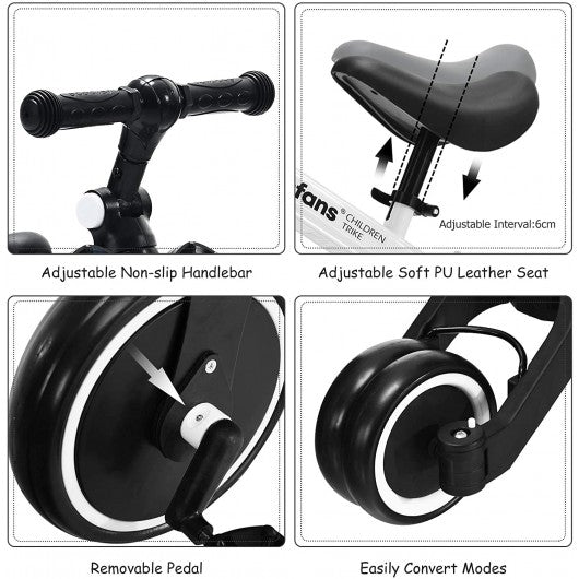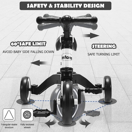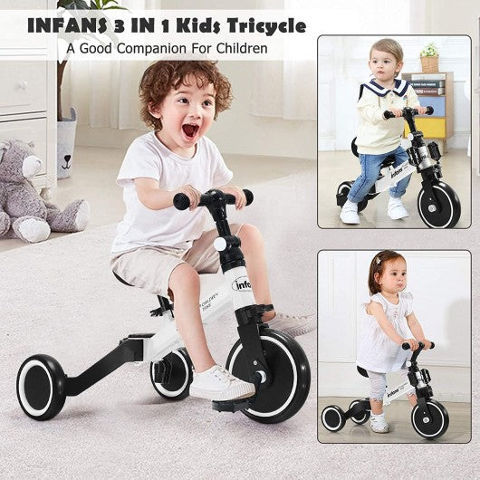 3 in 1 3 Wheel Kids Tricycles with Adjustable Seat and Handlebarfor Ages 1-3-White