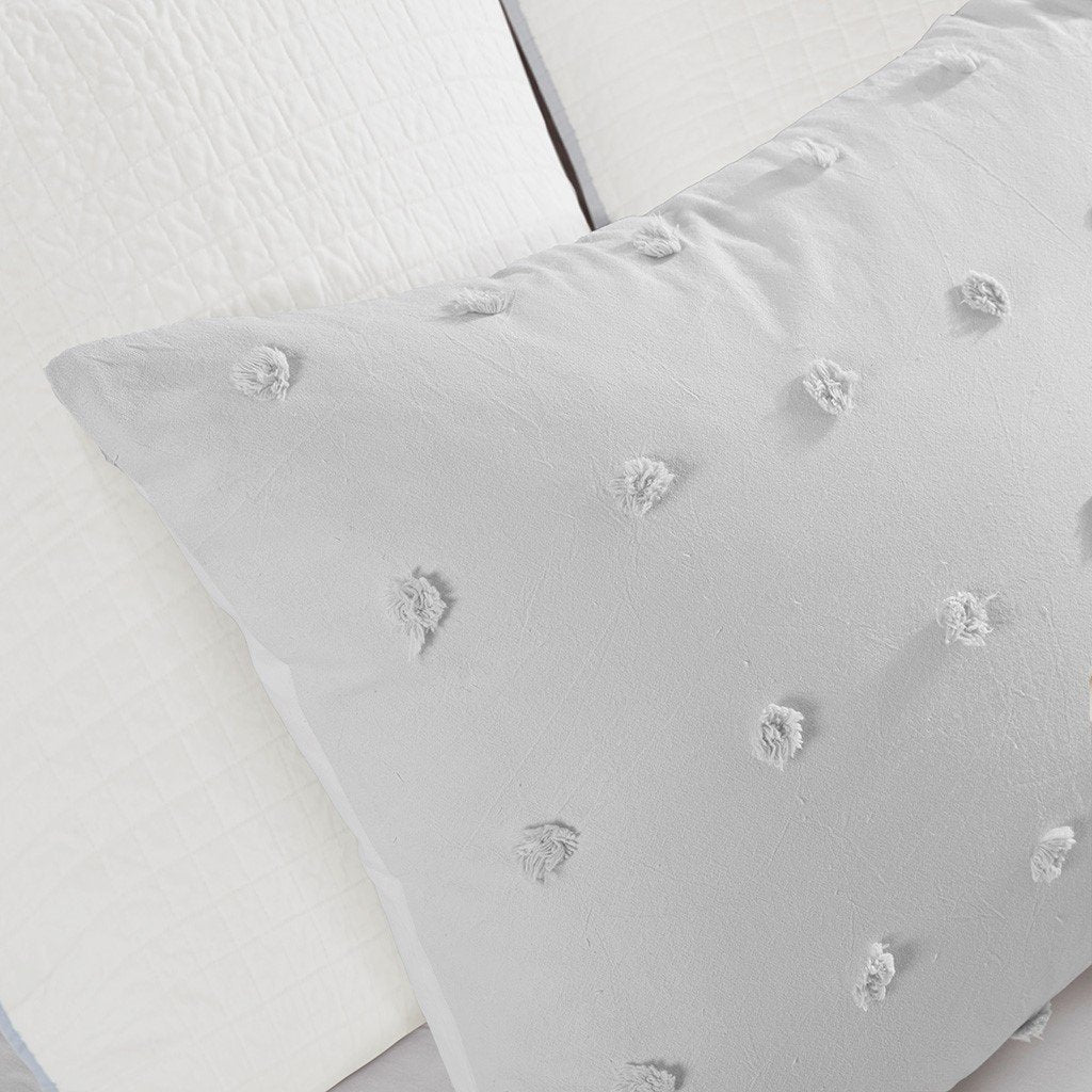 The Urban Habitat Brooklyn 5 Piece Comforter Set will create a charming look to your space. Featuring small cotton tufts, the comforter and matching sham add texture to this solid soft grey bedding set. A solid soft grey reverse complements the top of the bed, while one quilted euro sham adds texture to the bed. Two decorative pillows are also included to complete this comforter set. One pillow features a pleated design, while the other has matching cotton tufts to coordinate with the top of the bed. Made from 100% cotton, this comforter is machine washable and will provide a graceful update to your bedroom decor.