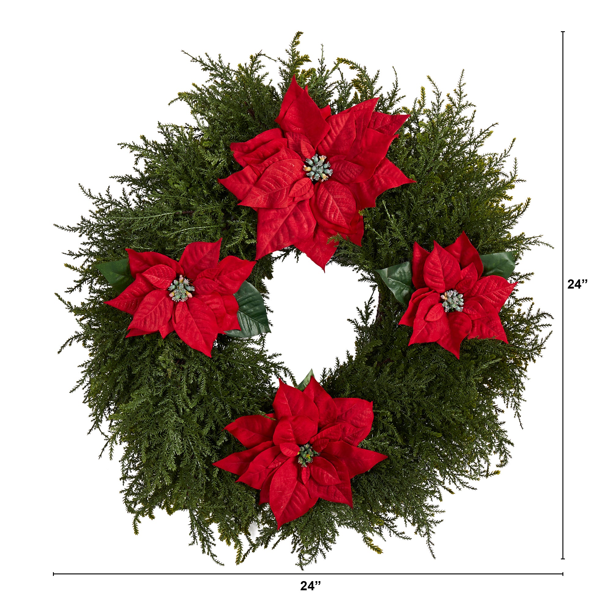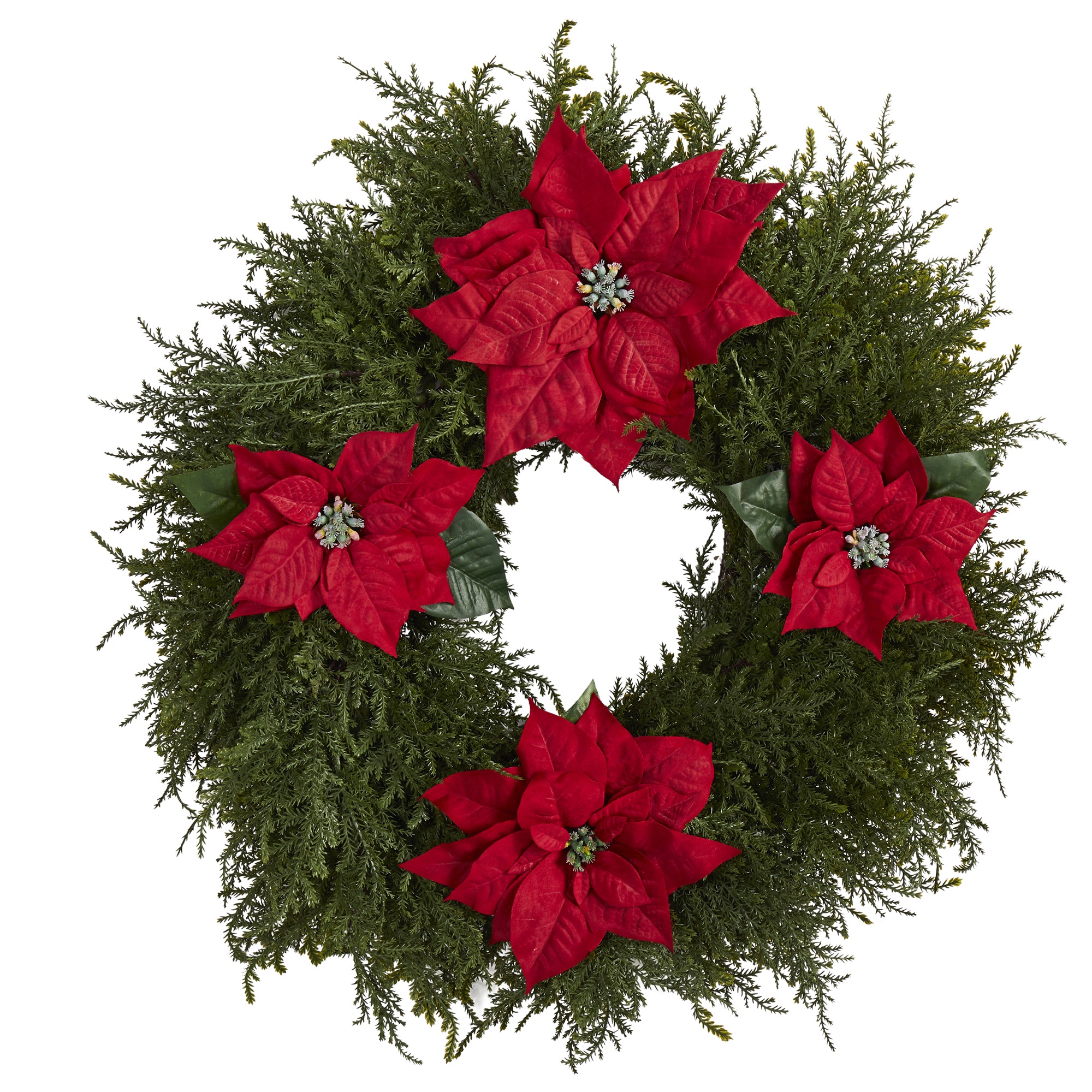Nearly Natural 24" Cedar and Poinsettia Artificial Wreath