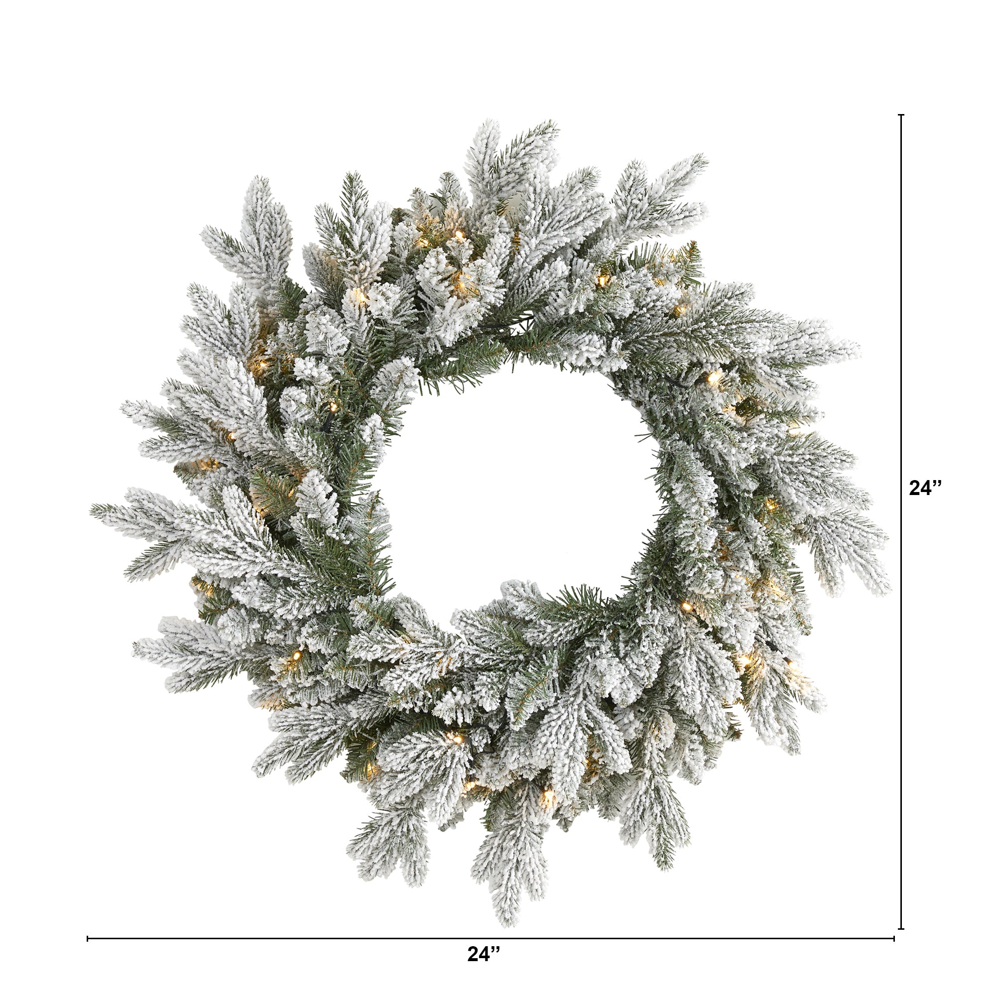 Nearly Natural 24" Flocked Artificial Christmas Wreath with 50 LED Lights