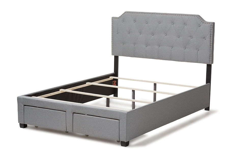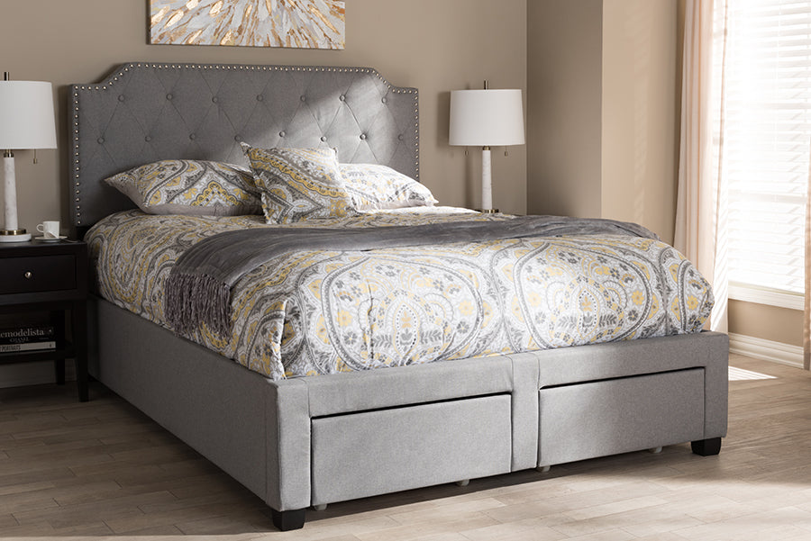 Baxton Studio Aubrianne Modern and Contemporary Grey Fabric Upholstered Queen Storage Bed