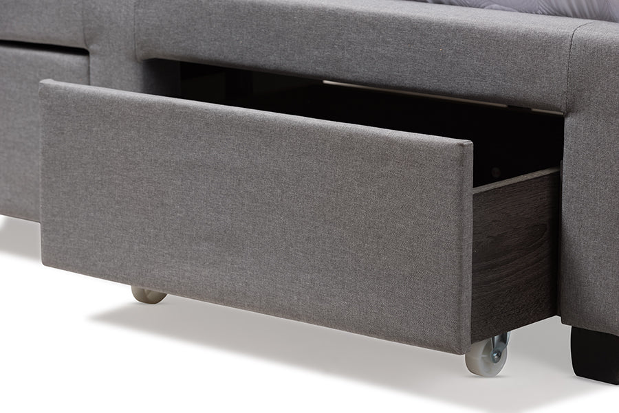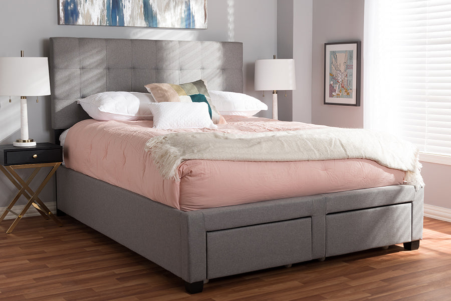 Baxton Studio Tibault Modern and Contemporary Grey Fabric Upholstered Queen Size Storage Bed