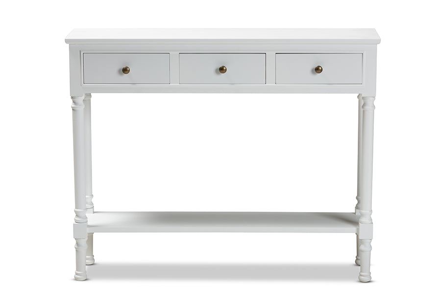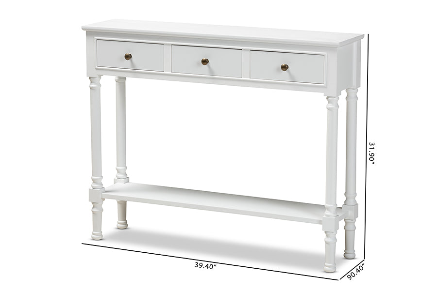 Baxton Studio Calvin Classic and Traditional French Farmhouse White Finished Wood 3-Drawer Entryway Console Table