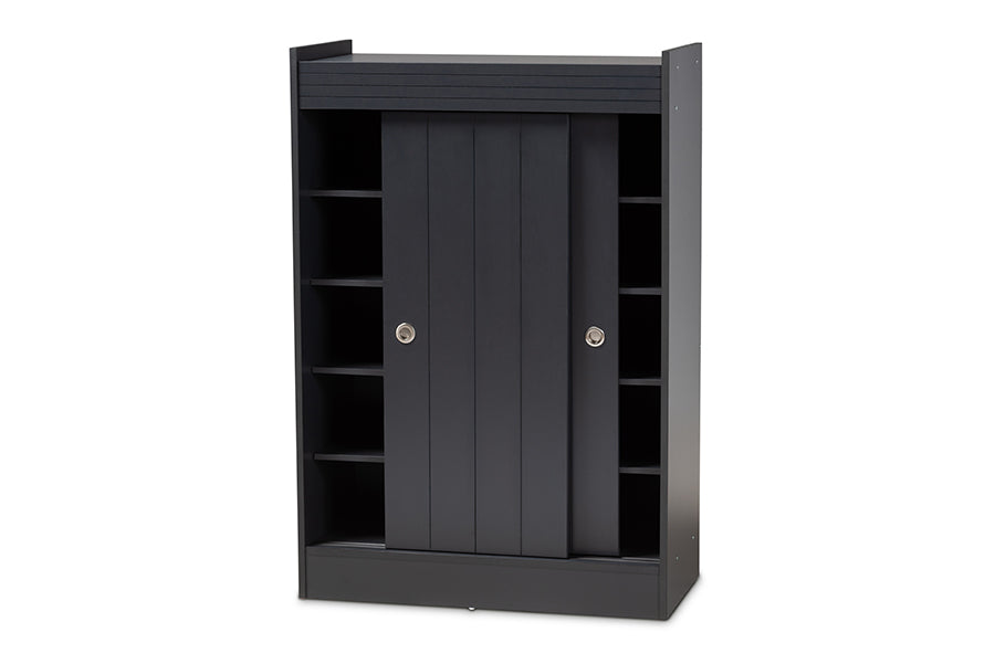 Baxton Studio Leone Modern and Contemporary Charcoal Finished 2-Door Wood Entryway Shoe Storage Cabinet