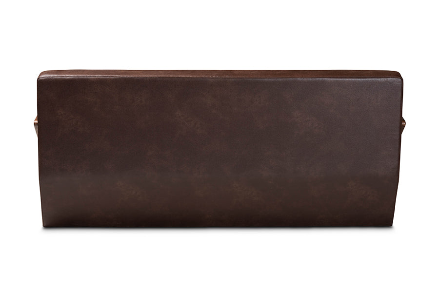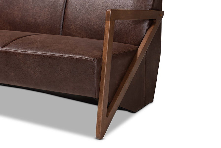 Baxton Studio Christa Mid-Century Modern Transitional Dark Brown Faux Leather Effect Fabric Upholstered and Walnut Brown Finished Wood Sofa