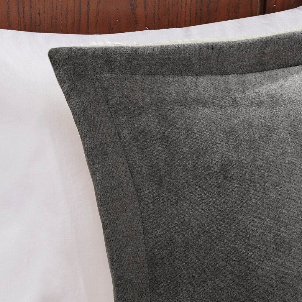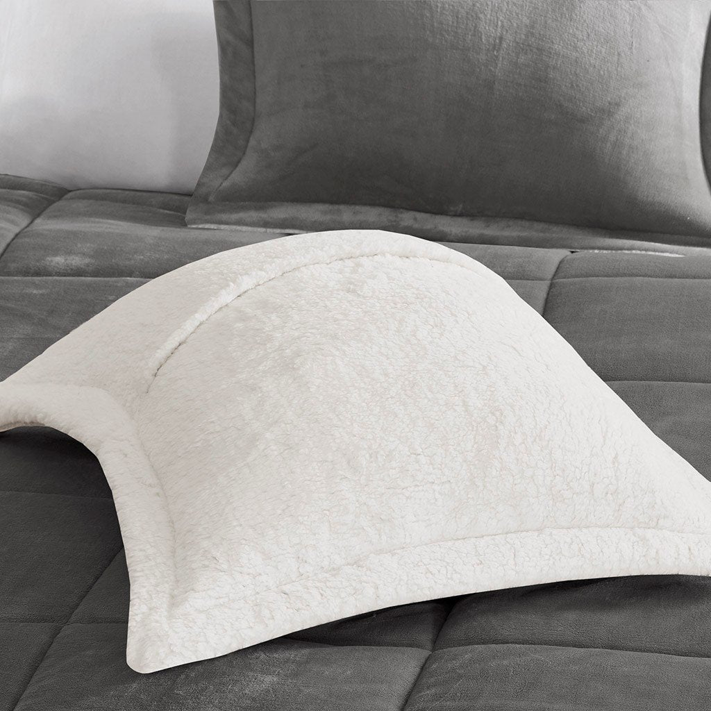 Woolrich Alton 100% Polyester Solid Low Pile Velour To Berber Comforter Set - Full/Queen - Charcoal/Ivory WR10-2887 By Olliix
