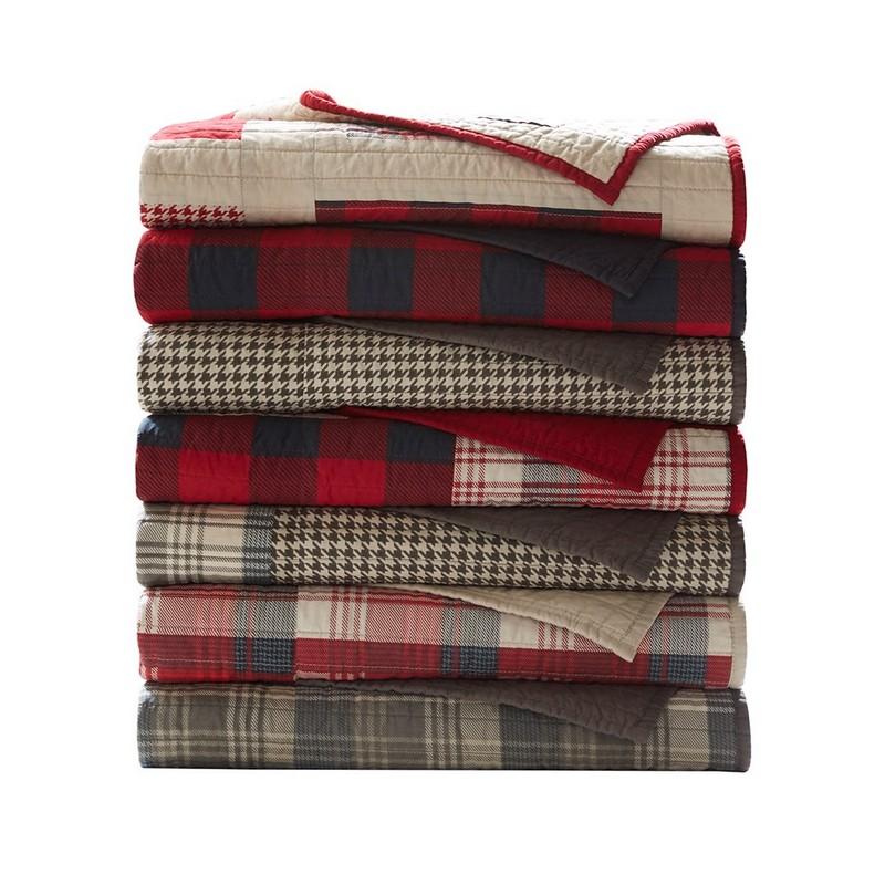 The Woolrich Tasha quilted throw features an all over brown and tan plaid and reverses to a solid brown color. Made from 100% cotton this lightweight throw is soft to the touch and can be used year round.