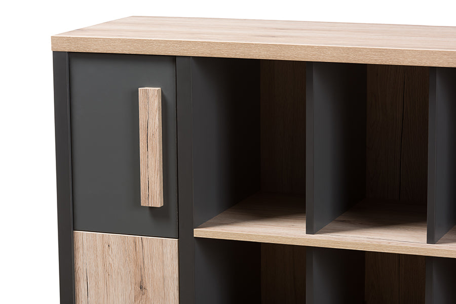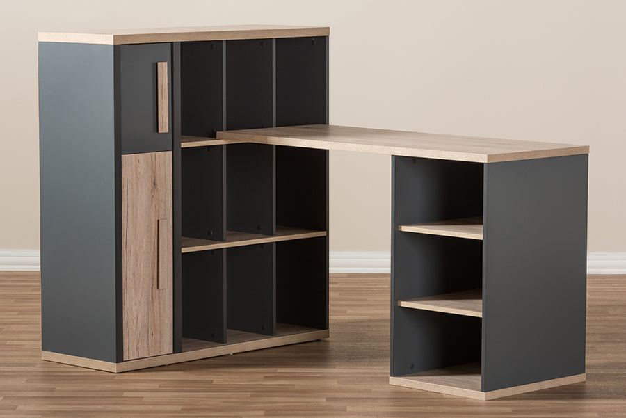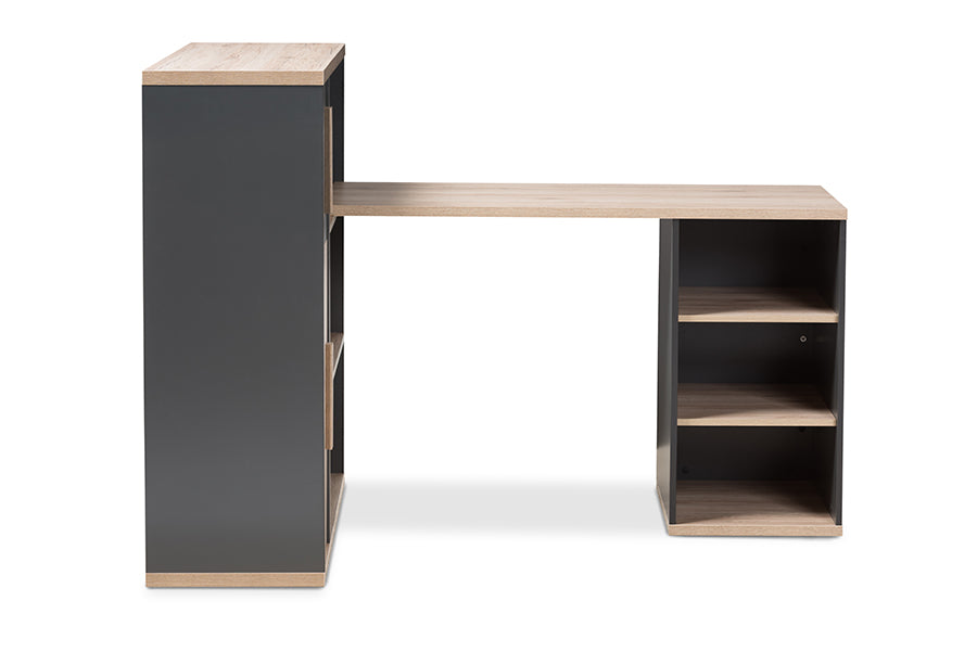 Baxton Studio Pandora Modern and Contemporary Dark Grey and Light Brown Two-Tone Study Desk with Built-in Shelving Unit