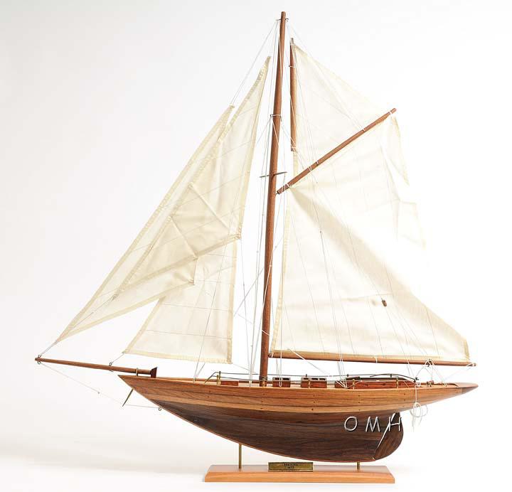 Built in 1898, the Pen Duick was one of the most beautiful sailing boats. Its simple design and sophisticated rigging of the sails makes it really stand out. Have it display as a home or office decor. Master craftsmen handcraft these highly detailed wood models from scratch using historical photographs, drawings, and original plan. They are built to scale with high-grade wood such as western red cedar, rosewood, and mahogany. They are 100% hand built individually using plank-on-frame construction method and are similar to the building of actual ships. Each model requires hundreds of hours to finish and must go through a demanding quality control process before leaving the workshop. This model hull is handcrafted from strips of wood using plank on frame construction method. The deck is made from many strips of wood. There are various details on the deck such as hatches, winches, and cabin. One can also locate a metal filter on the deck near the companionway. The stitched sail and intricate rigging complete the definition of a true sailing boat. The model is shipped with the mast folded down and some assembly is required. It’ll make a perfect gift for home or office decorator, boat enthusiast, or passionate collector.