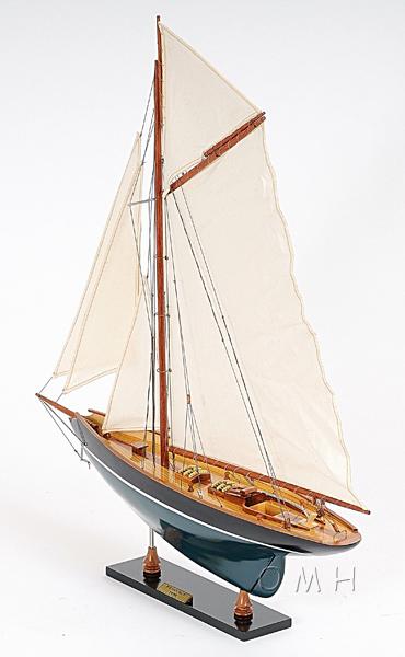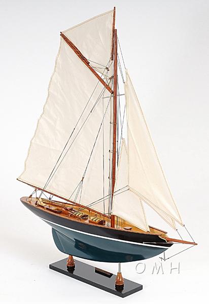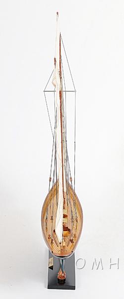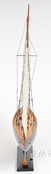 Built in 1898, the Pen Duick was one of the most beautiful sailing boats. Have it display beautifully as a home or office decor. Master craftsmen handcraft these highly detailed wood models from scratch using historical photographs, drawings and original plan. They are built to scale with high-grade wood such as: western red cedar, rosewood, and mahogany. They are 100% hand built individually using plank-on-frame construction method and are similar to the building of actual ships. Each model requires hundreds of hours to finish and must go through a demanding quality control process before leaving the workshop. This model hull is handcrafted from strips of wood using plank on frame construction method. It is then painted in green and black with white waterline. The deck is beautifully planked from many strips of wood. There are various details on the deck such as hatches, winches, and cabin. Located on the deck is a metal tilter near the companionway. The stitched sail and intricate rigging complete the definition of a true sailing boat. The model is secured tightly on a solid wood base with a brass nameplate. The mast and sail are folded down for easy packaging and shipping. It’ll make a perfect gift for home or office decorator, boat enthusiast, or passionate collector.