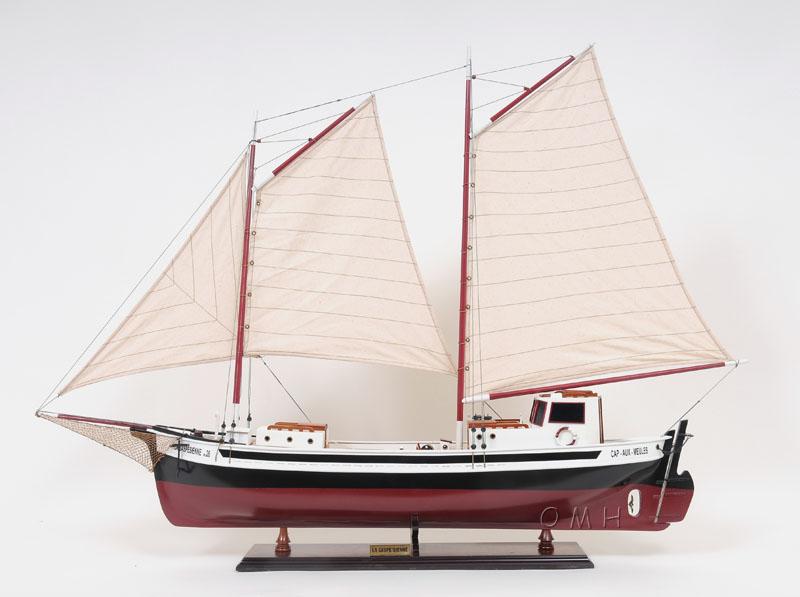 This series of fishing boats were commissioned by the Quebec provincial government and built in a Gaspe boatyard as well as a small shipyard Davie Bros. The boat had an oil engine but it was later replaced. The boats had also originally two mast and sails. The design was developed by Howard Chapelle, a naval architect of Boston but born in Nova Scotia.