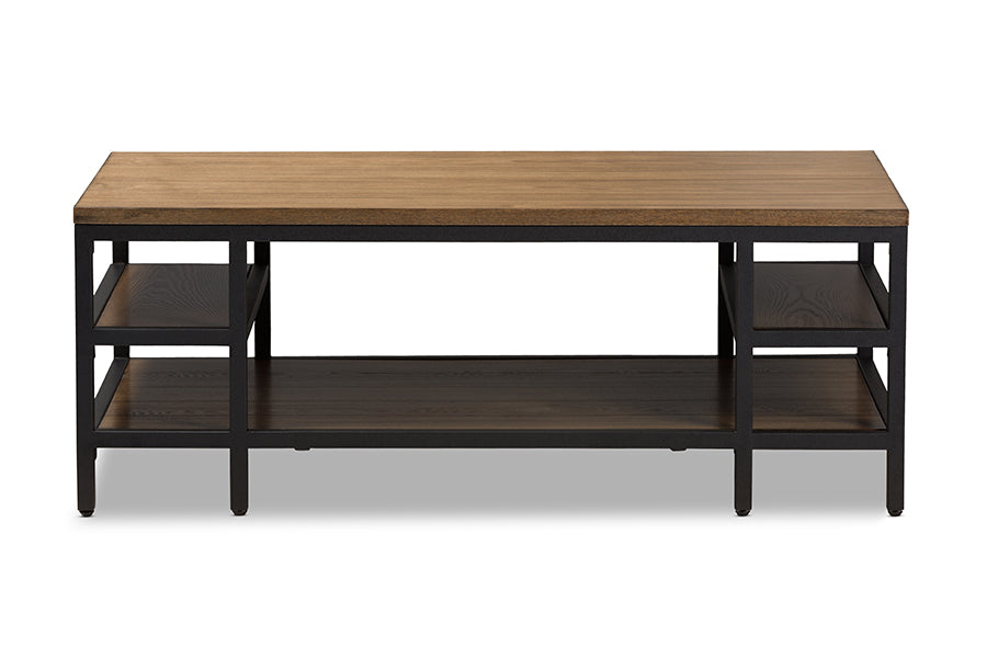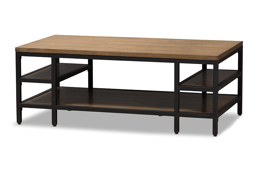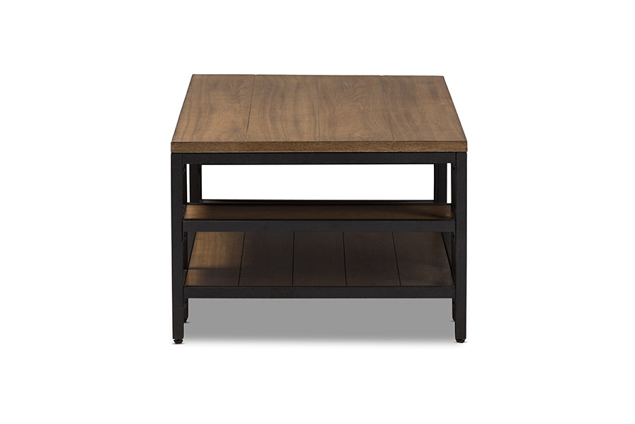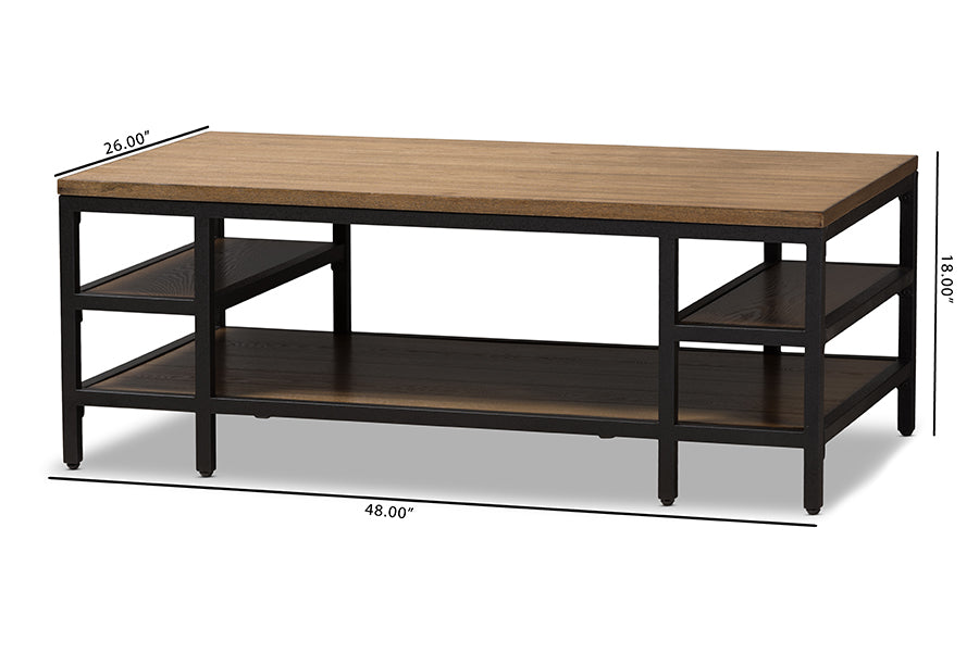 Baxton Studio Caribou Rustic Industrial Style Oak Brown Finished Wood and Black Finished Metal Coffee Table