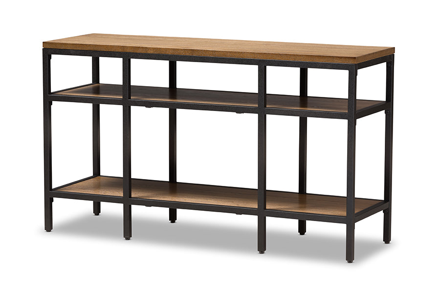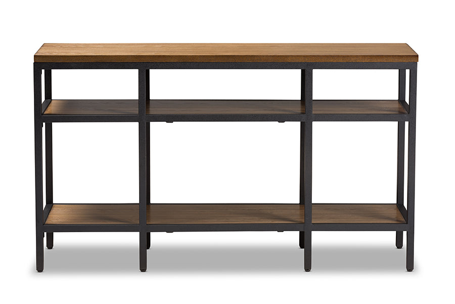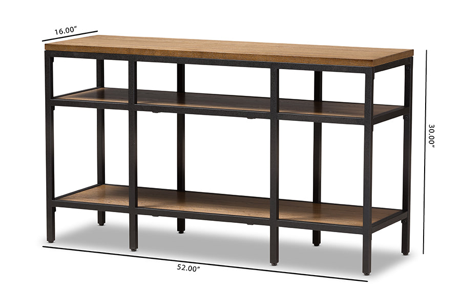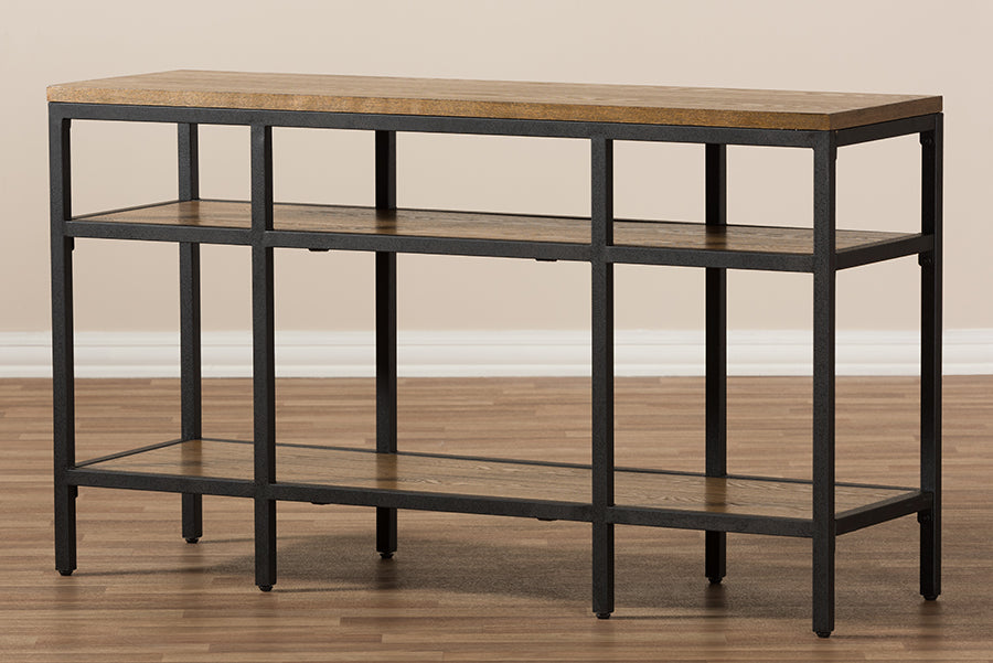 Baxton Studio Caribou Rustic Industrial Style Oak Brown Finished Wood and Black Finished Metal Console Table