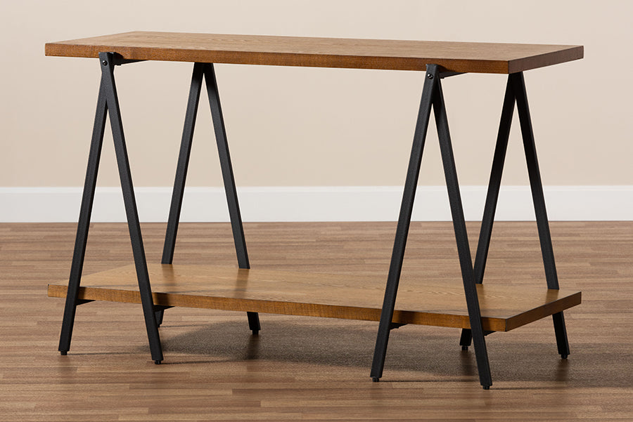 Baxton Studio Britton Rustic Industrial Walnut Finished Wood and Black Finished Metal Console Table