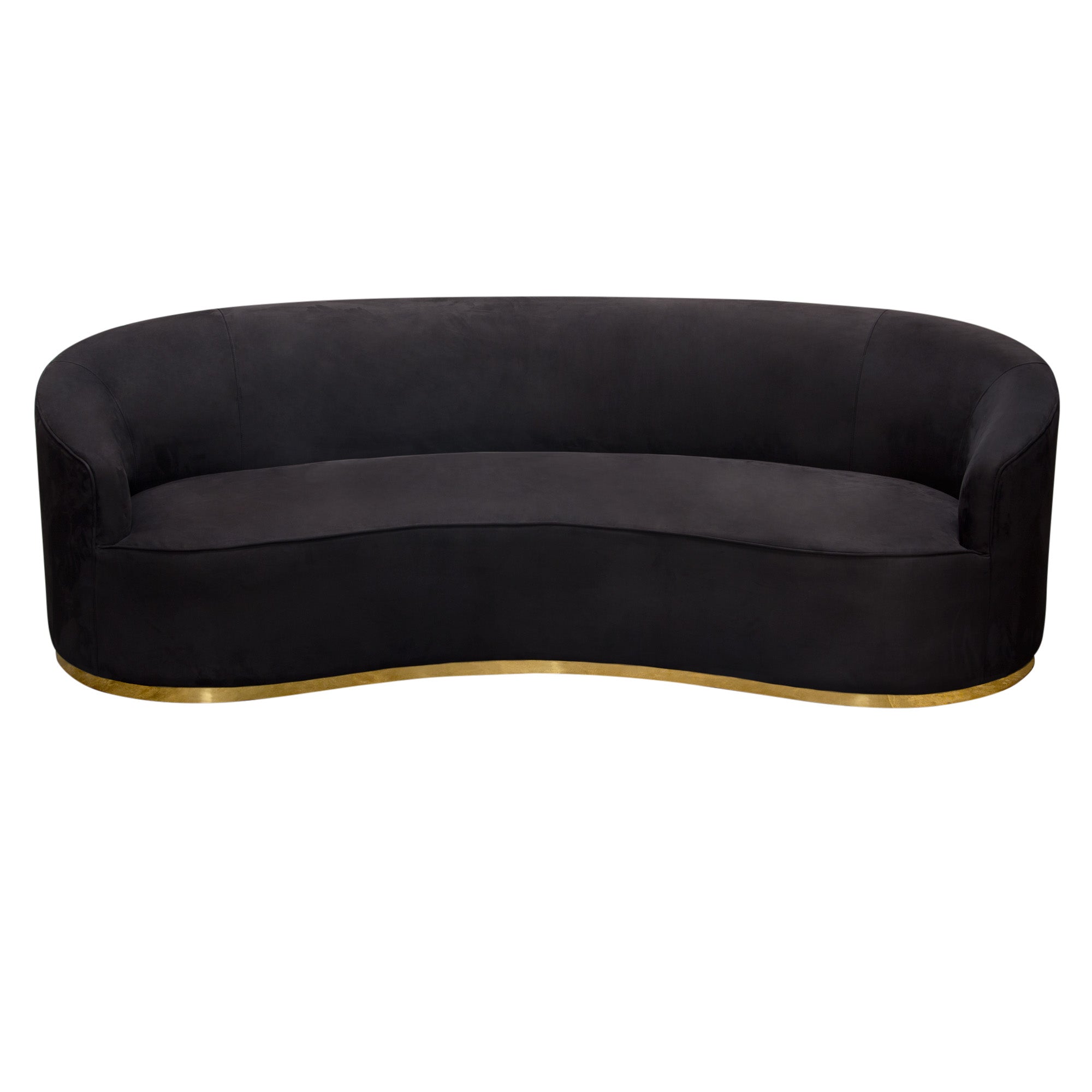 Raven Sofa in Black Suede Velvet w/ Brushed Gold Accent Trim by Diamond Sofa
