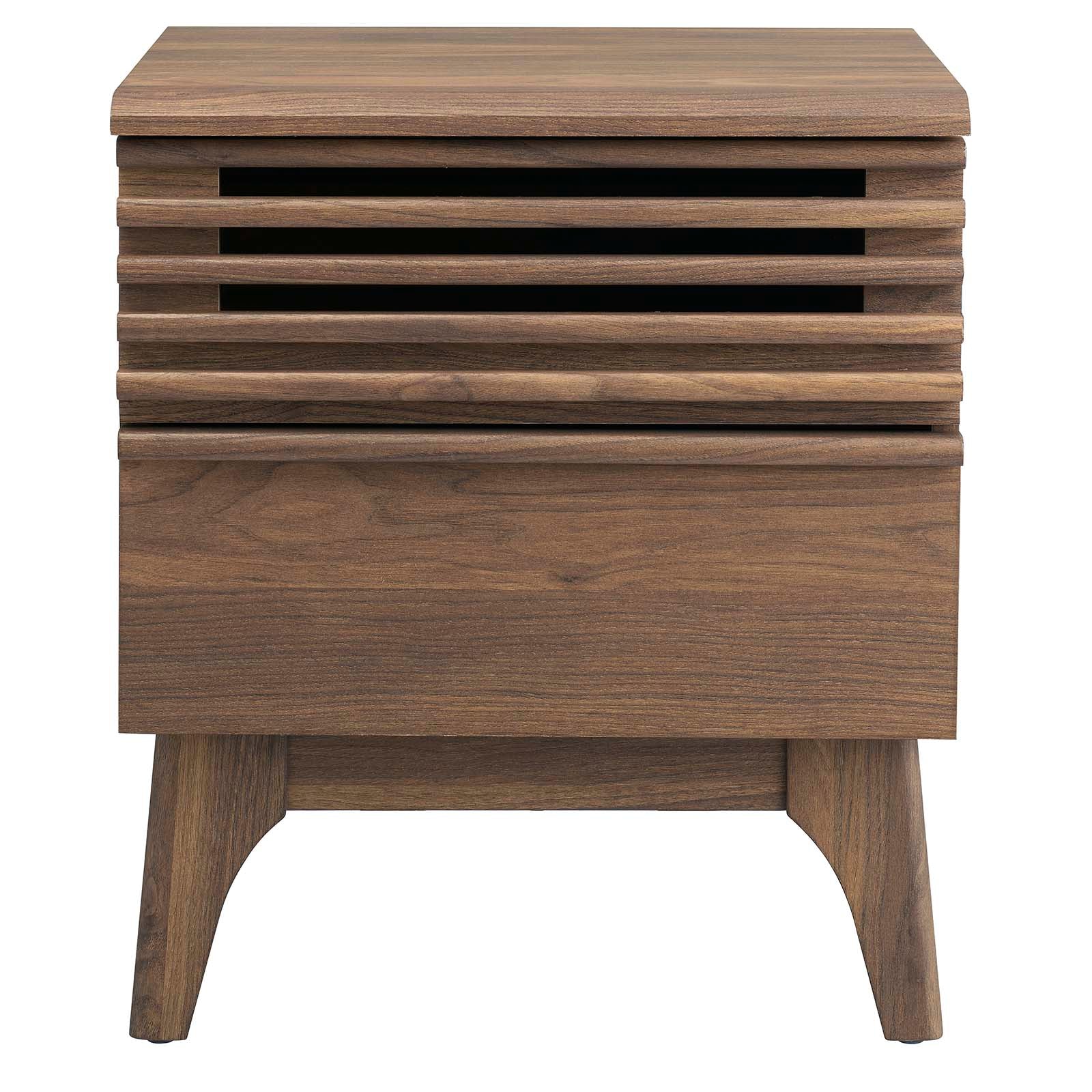 Tap into mid-century aesthetics with the Render Nightstand. With dual usage as an end table in the living room, this nightstand features a durable particleboard frame with a smooth wood grain laminate, four tapered wood legs, and two full-extension glide drawers. Boasting a mid-century modern style this accent table features a solid construction with a pleasing look and practical functionality that's perfect for the bedroom. Two full-extension drawers offer ample storage space to keep your bedside essentials neat and organized. Set Includes: One - Render Nightstand