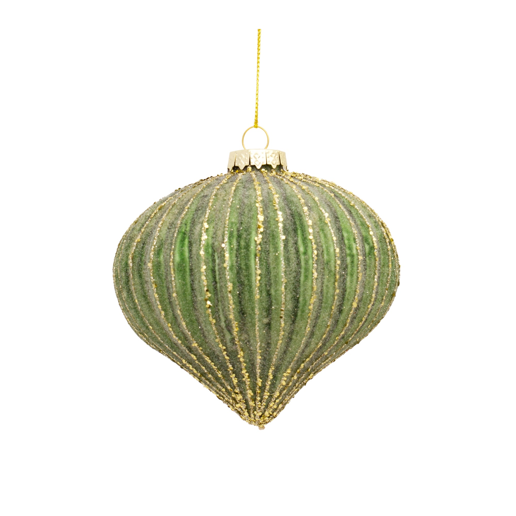Adorn your Christmas Tree with this beautiful set of Ball Ornaments. Featuring three assorted designs, the classic ball and onion ornament design paired with the warm green finish with gold accents makes this set the perfect addition to your holiday tree decor. The pieces can be used as gifts for friends to cherish, or you can display the set on your own Christmas tree and enjoy them for years to come., Ornament (Set of 6) 4.25"H, 4.5"H, 6"H Glass