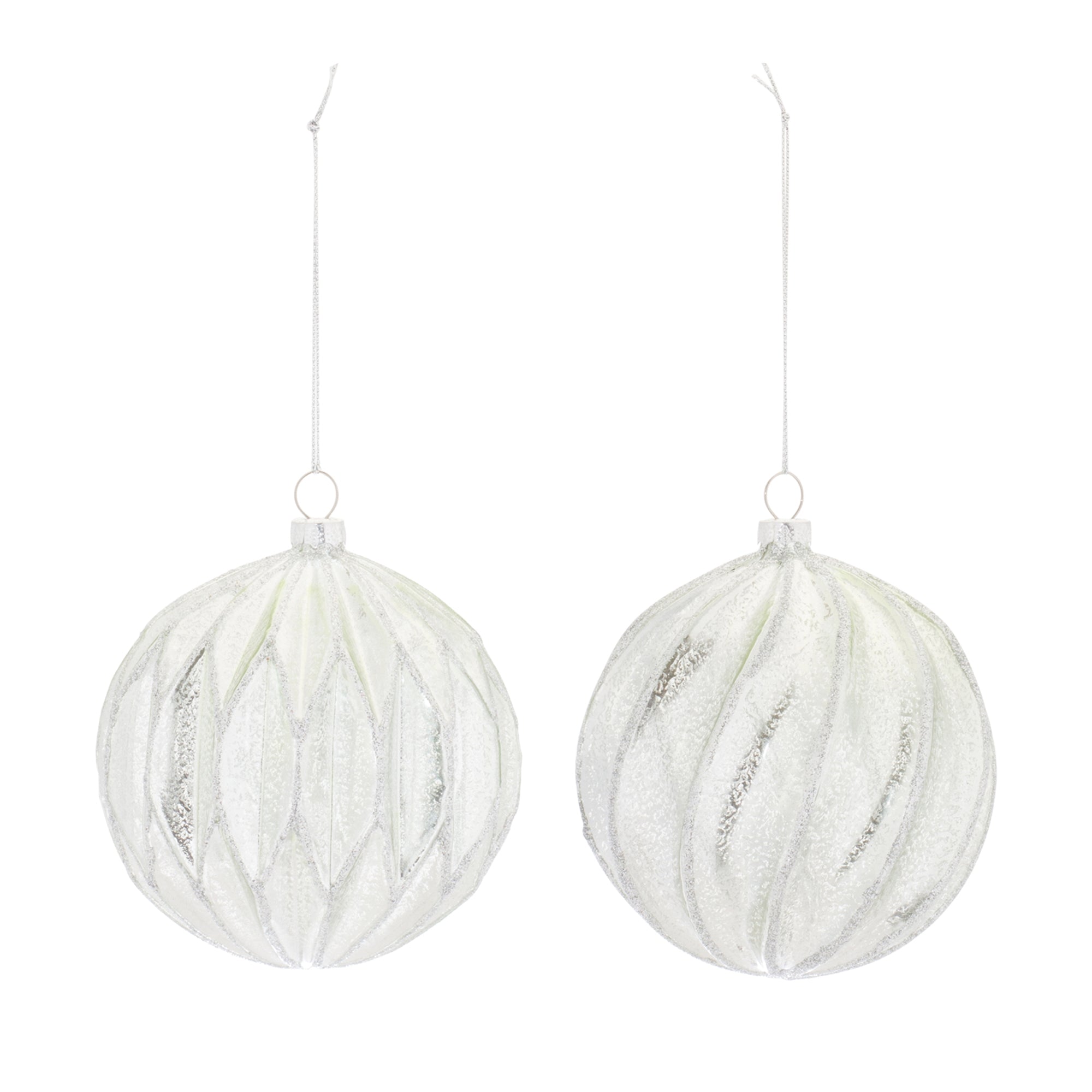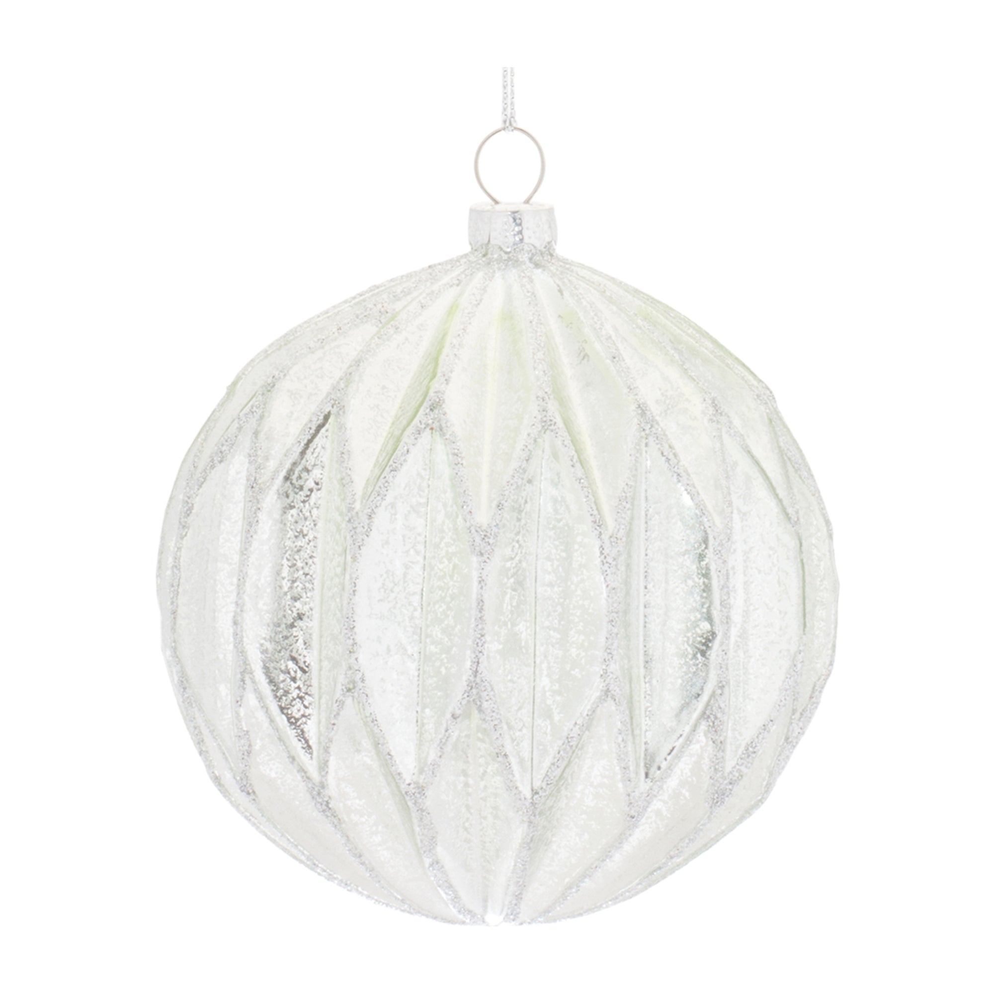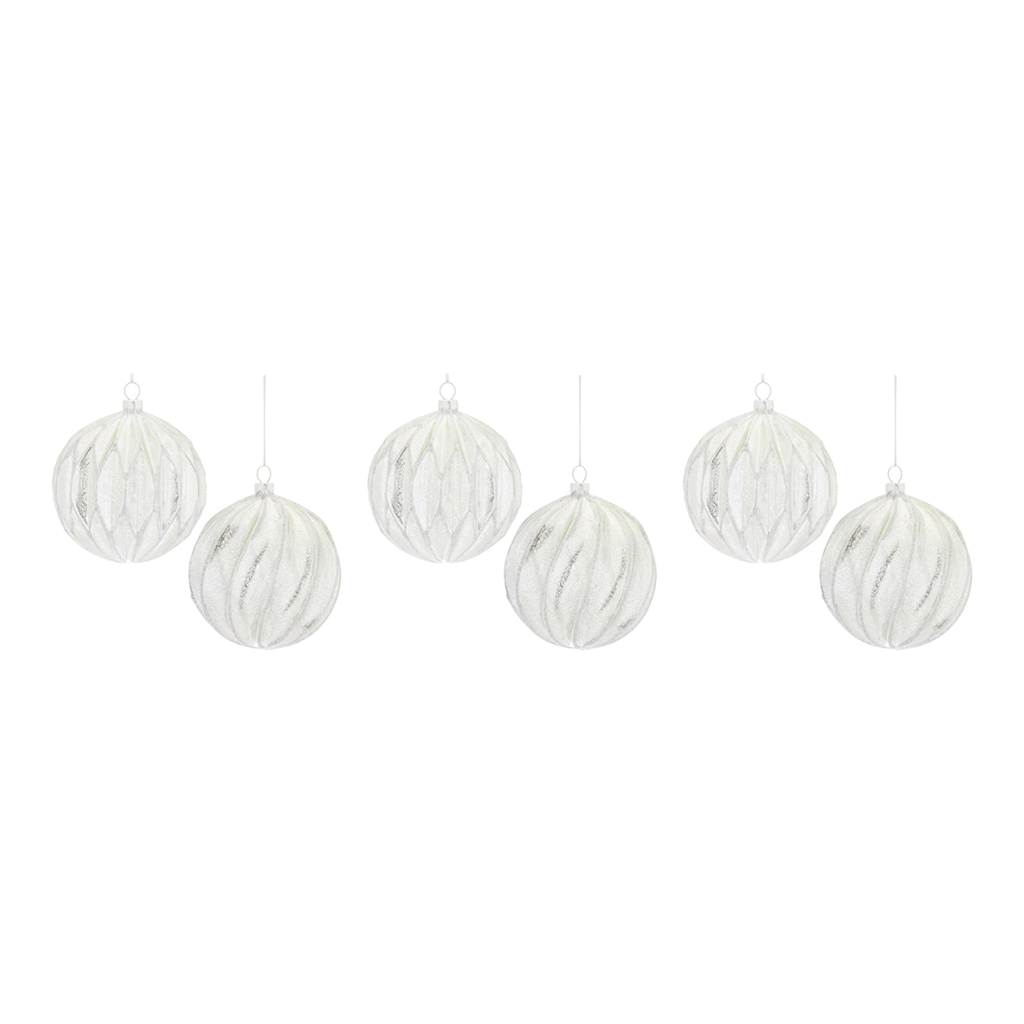 Adorn your Christmas tree and holiday decor with this stunning set of Ribbed Mercury Glass Ball Ornament s. Featuring 6 pieces, the chic silver tones paired with the ribbed design is the perfect combination to create a memorable display. The qualityglass composition and delicate silver string hanging accent is sure to endure for seasons to come. Whether you're adding a touch of cheer to your home or gifting to a loved one, these ornaments will definitely bring smiles. , Ball Ornament (Set of 6) 4"D Glass