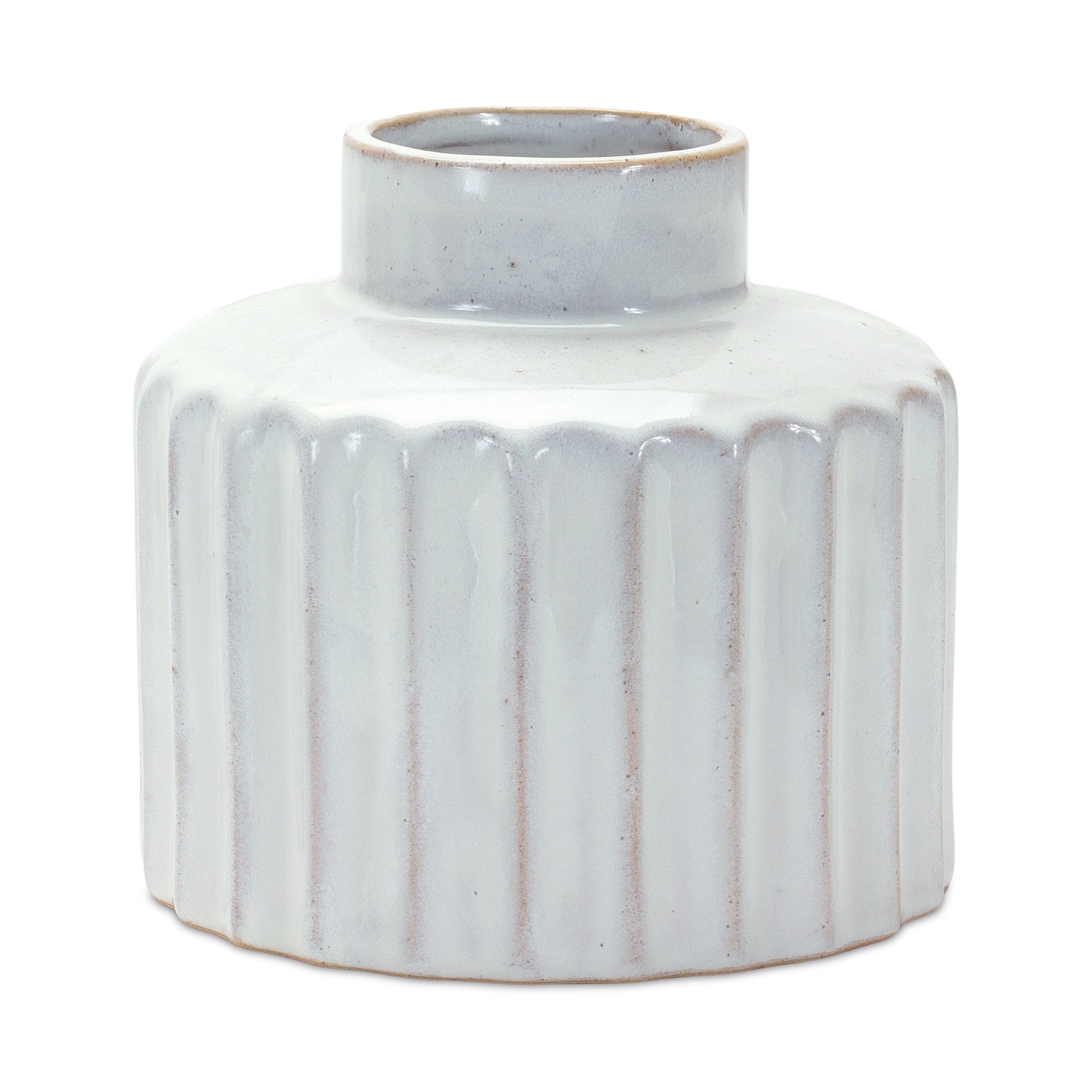Enhance your home decor with this beautiful set of Porcelain Vases. The neutral white tones paired with the ribbed glass design is the perfect combination to create a stunning display. The quality porcelain composition is sure to last for seasons to come. Complete the look by adding a bunch of dried florals or fresh garden stems to the vase. Featured in Melrose International's Simple Country collection., Vase (Set of 2) 4"D x 3.25"H, 5.5"D x 5.25"H Porcelain