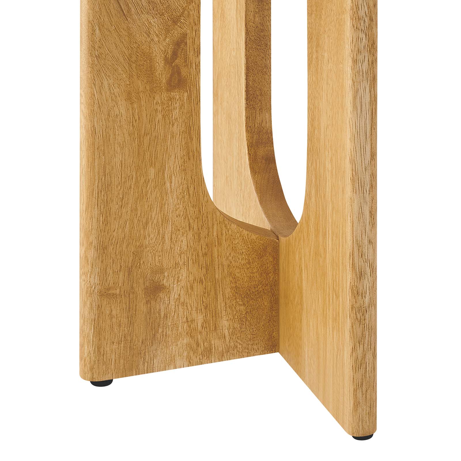 The Rivian 46" Console Table combines mid-century modern elegance with innovative style. Its double pedestal base, featuring arched cutouts in an intersecting design, creates a striking focal point in any room. Made from solid mango wood, this accent console showcases a beautiful 46 inch long tabletop, perfect for complementing living room furniture, hallway decor or entryways. Rivian is not just a statement piece but also a practical addition to your home. An ideal behind the couch table, this sofa table is great for showcasing books, candles or plants, making it perfect for modern home essentials. Equipped with adjustable, non-marking foot caps, the Rivian solid wood console table ensures floor protection and stability. Elevate any space with the Rivian versatile modern console table. Some assembly required. Weight Capacity: 220 lbs. Set Includes: One - Rivian 46" Console Table