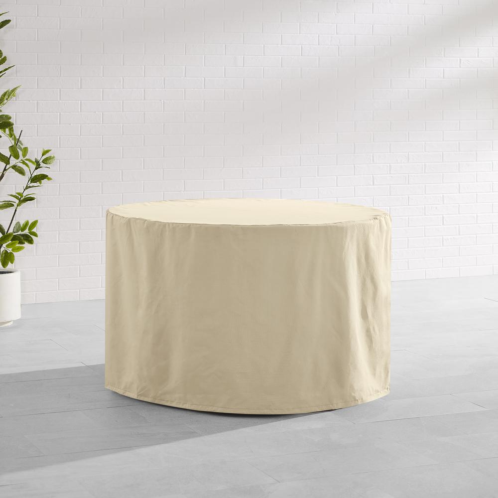 Give shelter to your outdoor round dining table with this universal protective outdoor patio furniture cover. Sewn from heavy gauge, reinforced vinyl, this outdoor table cover is ready to face the elements, be they snow, dirt, sap, rain, and more. Tighten the sewn-in drawstrings and maintain your patio table's beauty no matter the season. Designed to fit a variety of round outdoor dining tables.