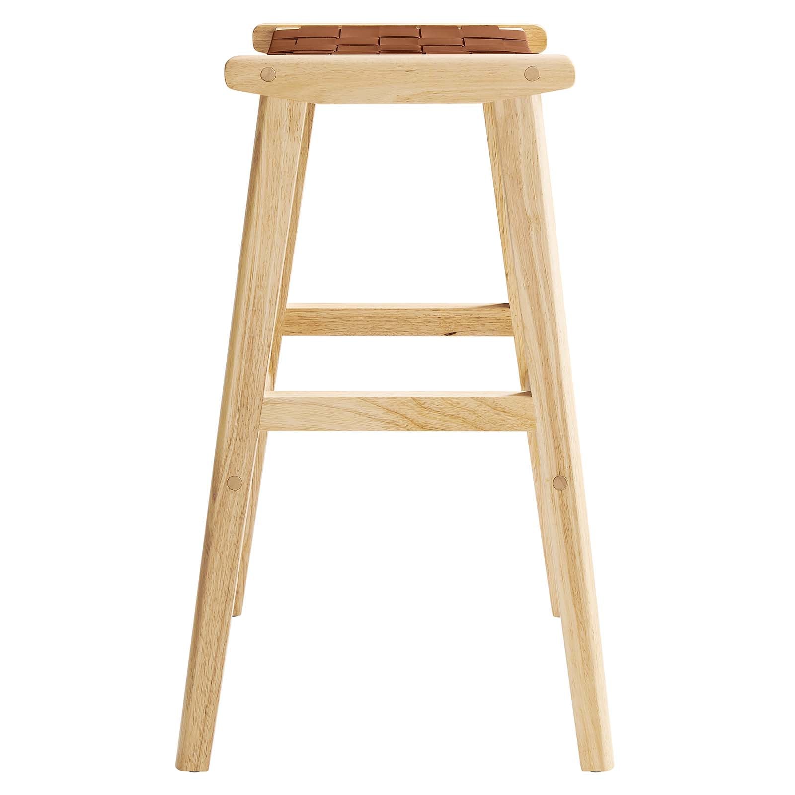 Spark engaging conversations with the Saoirse Bar Stool Set of Two. Artfully crafted with woven leather over a sturdy rubberwood frame, this set of two bar stools blends contemporary design with tactile elegance. Non-marking foot pads ensure both stability and floor protection, while the basket weave design, footrests, and side supports make for a personalized seating experience. These bar stools are perfect for the kitchen, breakfast nook, bar area, dining counter, or entertainment room. Assembly required. Weight Capacity: 331 lbs. Set Includes: Two - Bar Stool