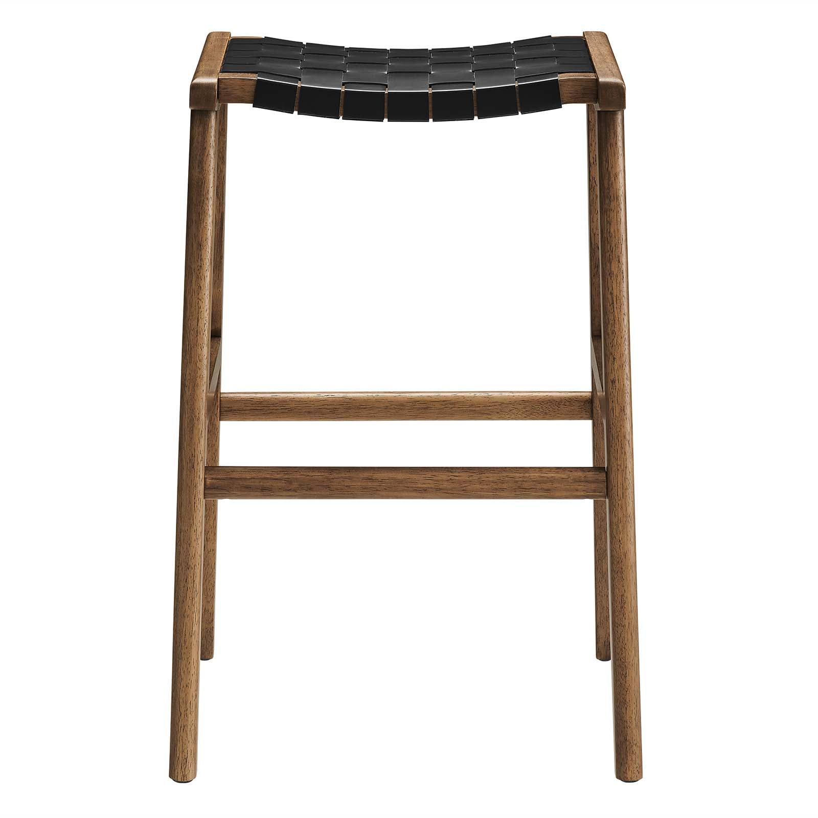 Spark engaging conversations with the Saoirse Bar Stool Set of Two. Artfully crafted with woven leather over a sturdy rubberwood frame, this set of two bar stools blends contemporary design with tactile elegance. Non-marking foot pads ensure both stability and floor protection, while the basket weave design, footrests, and side supports make for a personalized seating experience. These bar stools are perfect for the kitchen, breakfast nook, bar area, dining counter, or entertainment room. Assembly required. Weight Capacity: 331 lbs. Set Includes: Two - Bar Stool